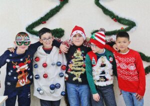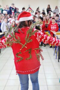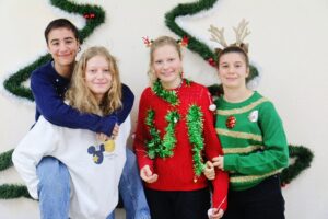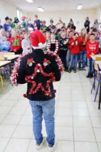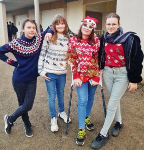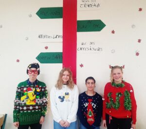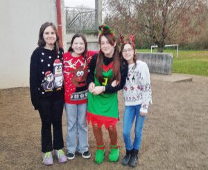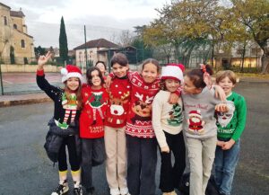 Alors que le réveillon du Nouvel An 2025 approche, voici un retour sur les bons moments partagés durant la semaine chargée qui a précédé les vacances de Noël et durant laquelle nous avons fêté dans notre Ensemble scolaire privé :  Noël 2024 et la nouvelle année 2025 qui approche… Quelle joie de voir les jeunes et les adultes partager ensemble ces bons moments dans notre établissement ! En classe, à l’internat, au cinéma, avec l’équipe de restauration qui a régalé petits et grands, du concours du pull de Noël, à celui de la plus jolie carte de vœux, du goûter de Noël offert à tous les élèves (école, collège, lycée) par notre Association des Parents d’élèves, jusqu’au goûter de départ pour nos cinq formidables correspondantes espagnoles de Quatrième et leurs familles venues de Saragosse les chercher. Puisque toutes les cinq, ont terminé brillamment leur premier trimestre entier en France, à Gabarret, notre village. Beaucoup de couleurs, de joie, d’éclats de rire et d’émotion aussi, en cette semaine festive, comme l’attestent les très jolies photos prises par Marie Traverso et Valérie Dutertre.