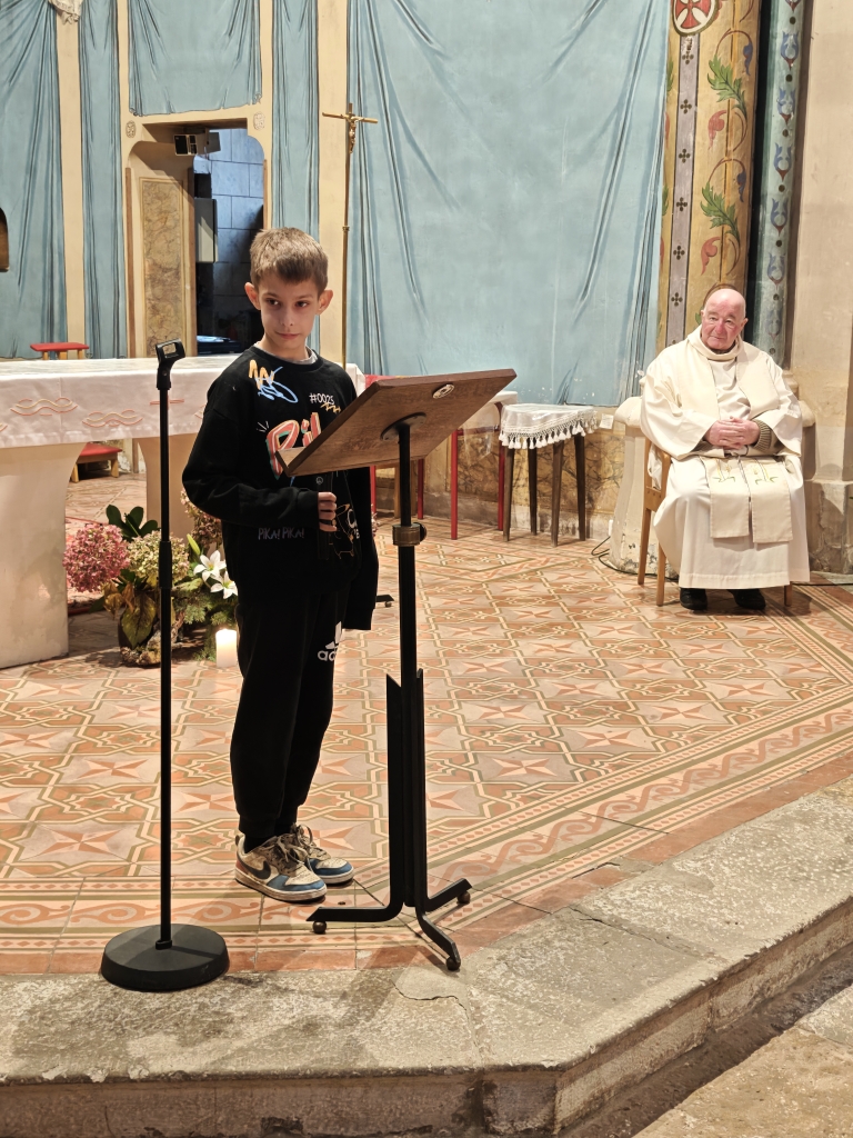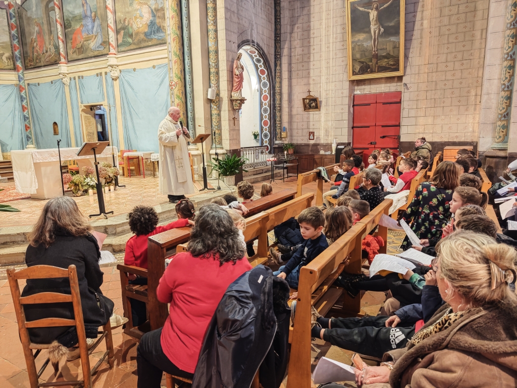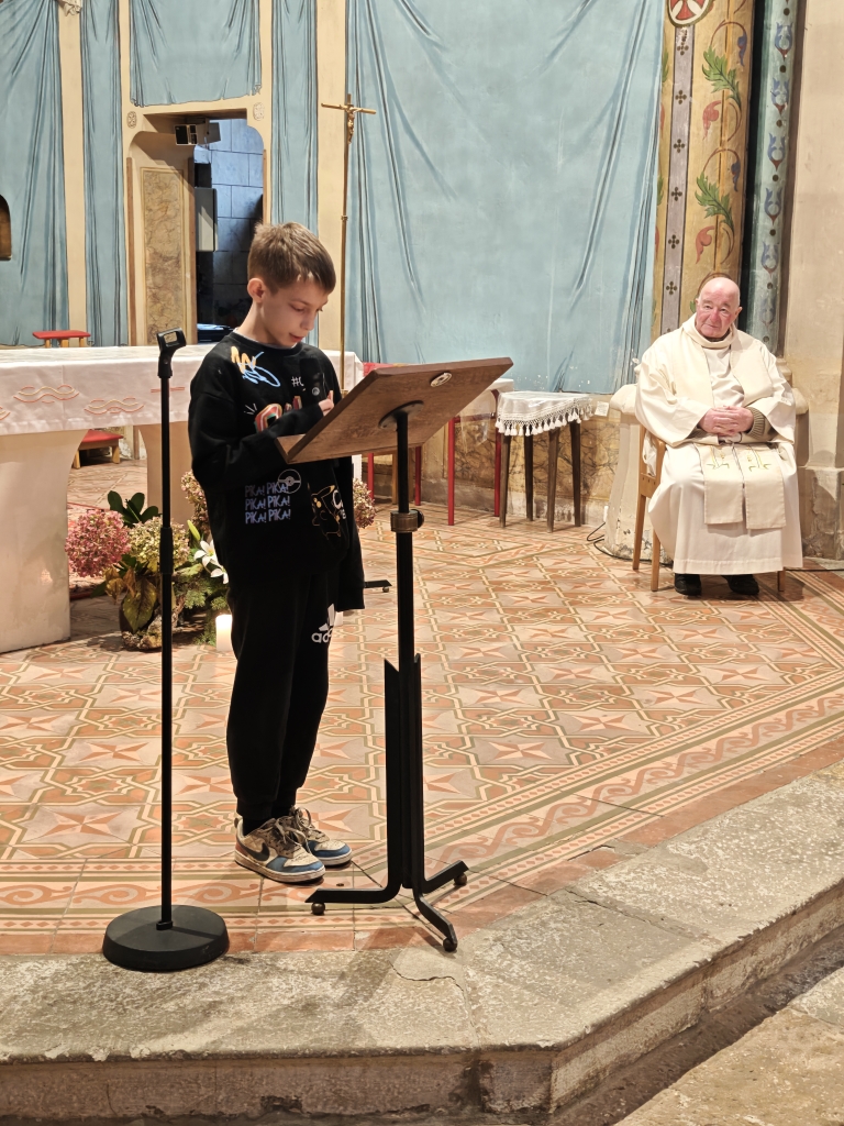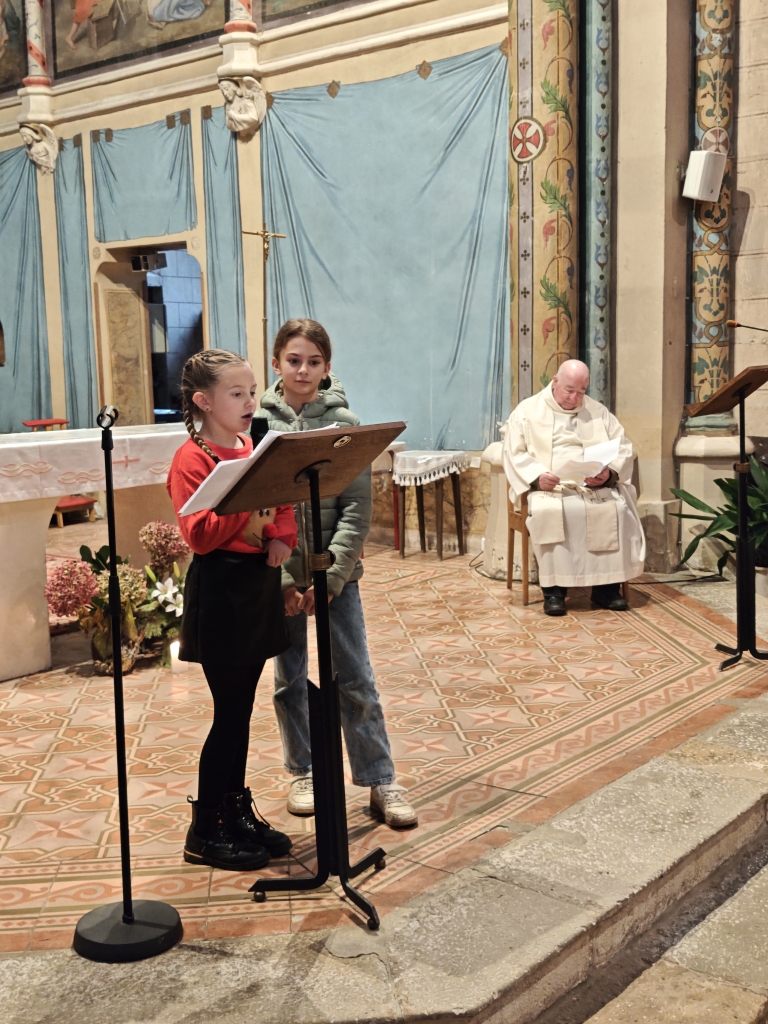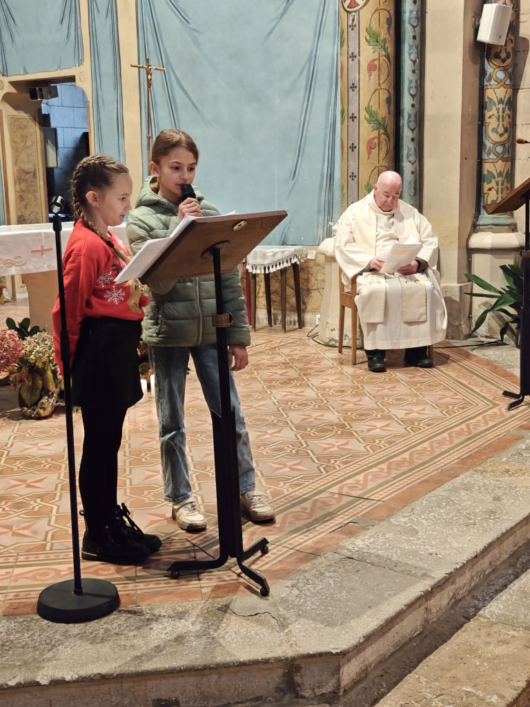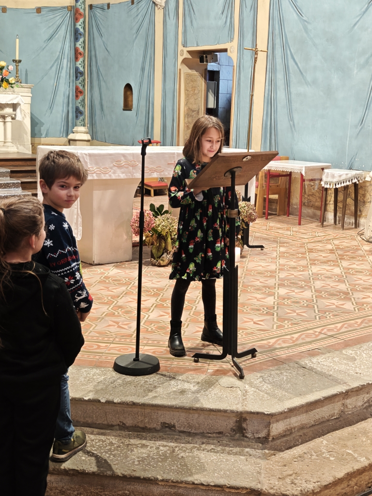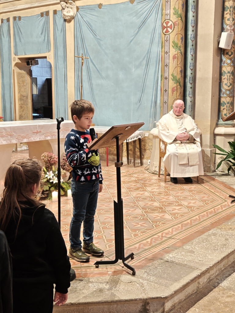 Tout au long de la célébration, de nombreux chants sont venus rythmer ce temps fort. Pour conclure, Baptiste a adressé un message invitant chacun à vivre ce temps de Noël dans un esprit de partage, de paix, de joie et d’espérance.