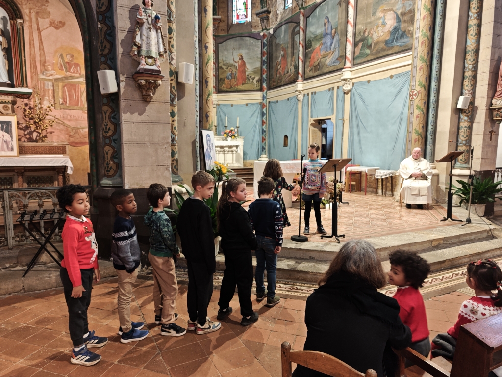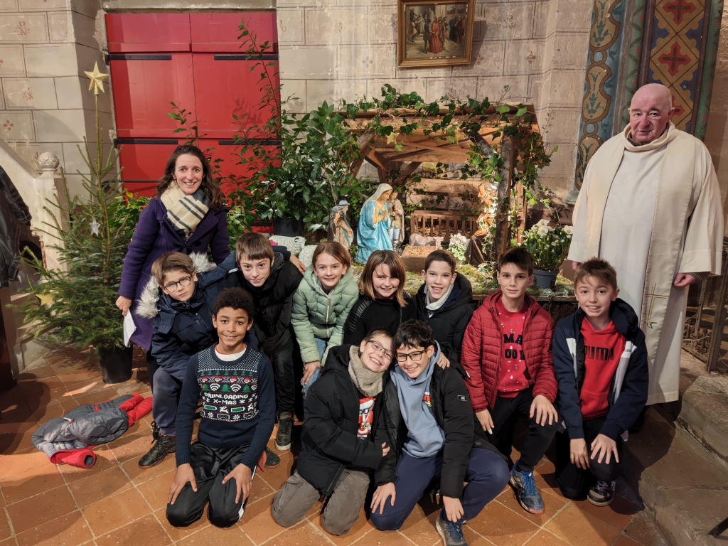 La célébration a débuté par un mot d’accueil de l’abbé Obdam, qui a invité les élèves à entrer dans ce temps de Noël. Puis, après un premier chant, les élèves de CM2 ont présenté un dialogue retraçant l’histoire de la Nativité, racontée du point de vue des bergers, les premiers témoins de la naissance de Jésus.